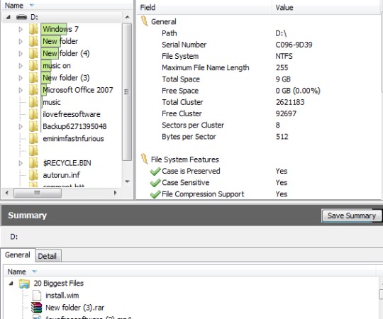 After this, scan process will start which depends on size of hard disk/folder to provide results. Scanned results will be available in front of you as a full report as well as in a summary. In summary, you can view top most 20 files using most of the disk space and details of file types (including files) occupying disk space.