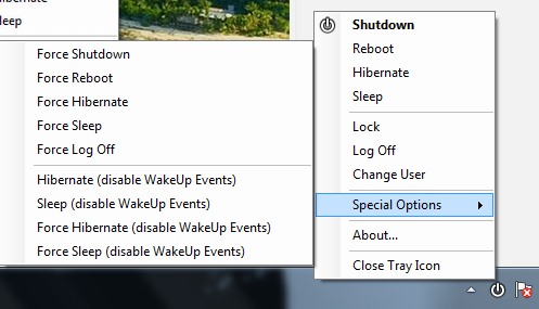 NPowerTray is a basic software that gives some useful power options (as mentioned above) to perform. It will be worthy in case you need to force shut down, sleep, reboot PC, or to disable wake up events without opening software that are used to schedule PC for automatic wake up. You can use link present below to download NPowerTray.