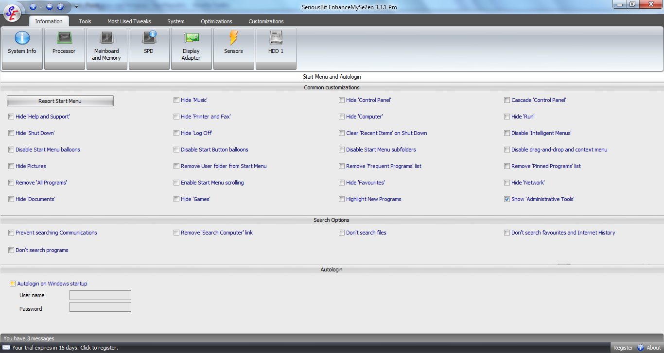 EnhanceMySe7en is a free Windows manager software which has been specially created to monitor the different aspects of a system. This windows manager software can be used to obtain the entire information of your system, from start-up information, disk cleanup, defragment and more. In short, you get the entire control of your system in your hands. Using this free Windows manager you can enhance your Windows computer performance.
