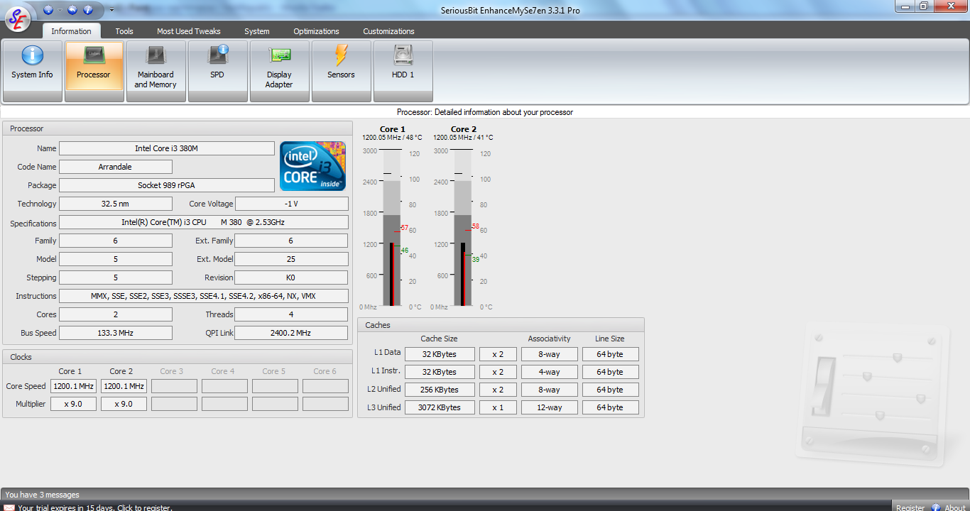In the free version, you don’t get to use the tools on your hard drives monitor. Neither of the performance tweaks, Network and Security, are available! Copying and moving of system files, network and file tools, are also not present in the trial version. There are many other features that are missing in the free version, but are available in the pro version.