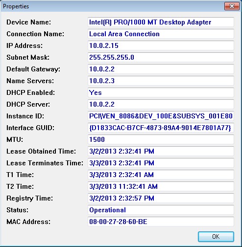 Notice that we have scrolled to network lease info, which is something that we didn’t mention in the features list above, a lot more useful information can be found. Right click on a network adapter in order to export HTML reports about the networks. By selecting Properties, info about network adapters is presented in a more readable form: