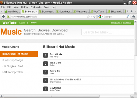 Wontube is a website which collects and sorts videos and music files from various platforms and makes it easy to search for them and download them. The site aggregates videos from a number of other platforms like Hulu, YouTube and Vevo. It saves you from the time-consuming job of visiting separate sites for different kinds of video and music files. All these video and music files are available in a single place, i.e. Wontube.com. One can search for any video or music file using the search option which will return you results from a number of platforms in a concise form. One could also check out the hottest and the most popular videos and music files.