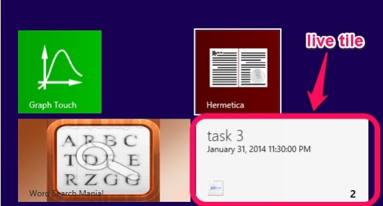 The tile reminder would remind you on the Start Screen Tile, about the tasks that you have to do.