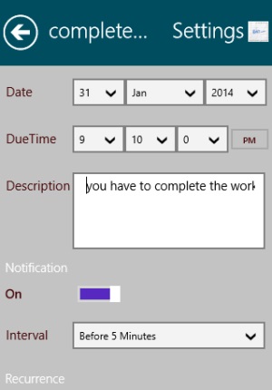 ActiveNote is a good Windows 8 Task Reminder app with nice interface and is easy to work upon. There is option to set alarm reminders. Along with that, it shows the tasks which are to be done, on the Start Screen Tile. All in all, a nice app in my opinion, ActiveTask is a must.