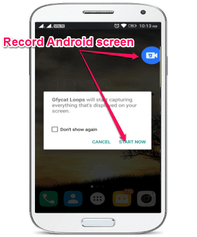 Step 2: When you tap on the “Circular” icon, a popup dialog will appear with a “Start Now” option. Now, to start recording the Android screen, simply hit the “Start Now” button. After that, the recording will start and all your Android screen activities will be recorded as animated GIF by this app.
