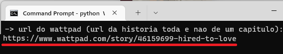 - Now, you can run the script directly. Or, you can simply double-click on the EXE file to launch it. It will ask for the URL of the story that you can copy from Wattpad. To copy the URL, make sure that it is in the correct format. To get a Wattpad URL in this format, you click on its cover image and then copy it.