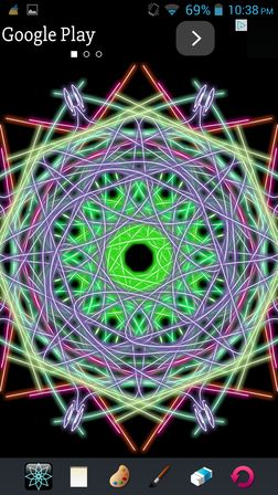 It creates the effects randomly, each tap on the screen will create a different effect. App is very simple, there’s no menus, you see kaleidoscope effects right away after running the app. They take up the whole screen, with the exception of the ad, which is a bit of a drawback.