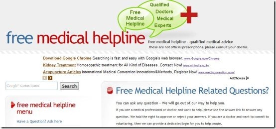 FreeMedicalHelpline is a one of the most simple and straightforward website which allows you to put up any kind of medical query like a breeze. Like above written web services this one also takes you through the simple process to put up a question. You need to enter your name, email, summary of medical condition, then verify the code, and finally type in your query between 100 to 1000 words. Please make sure that you should enter your email address correctly, and the medical query should be entered correctly with all relevant details and without any spelling mistakes. You will be informed via email when your question is answered. Try this out and get free online medical advice.