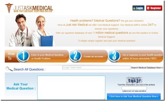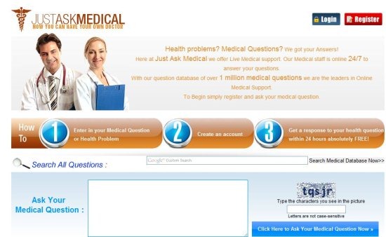 JustAskMedical is another user-friendly web service which provides you free online medical advice on any of your medical, related questions. This web service allows you to type in a question first, then create an account by filling in relevant information. You will get the answer for your question via email. The good thing about this web service is that it specifies a time limit, and you would get the answer for your query within 72 hours from the time you put up your question. The disturbing thing was that it takes 24 hours to activate your account on this website. Try JustAskMedical and get accurate and correct solution for your health problems like never before.