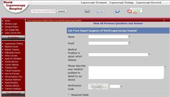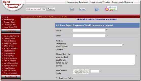 LaparoscopyHospital is another web service, which provides you free online medical advice from the expert surgeons of world laparoscopy hospital. For asking a question, you need to click on the link “click here to get free medical advice”. Feed in your details like your name, email address, mention the disease, describe your medical problem. Then you need to verify the code given in the box and click on submit button. That’s it, you will receive an email from their side, which would obviously contain advice for your medical problem. This website does not specify any time limit for getting advice.