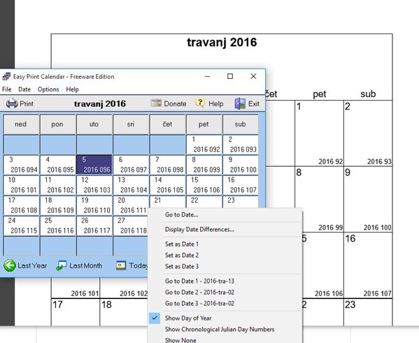Appearance of the calendar can be changed, there are 2 themes that are available, “green and yellow” and “silver and teal”. Day of the year or chronological day numbers according to the Julian calendar can be shown on the calendar. They can be seen on the square boxes of each date. In the background on the image above you can see how the standard calendar layout looks like. It’s possible to print all the months at once or one moth at a time. Also worth mentioning is the planner layout printing support, where a planner layout (with empty boxes for writing in appointments, tasks) can be printed. Easy Print Calendar is simple, but at the same time offers a surprisingly decent amount of features.