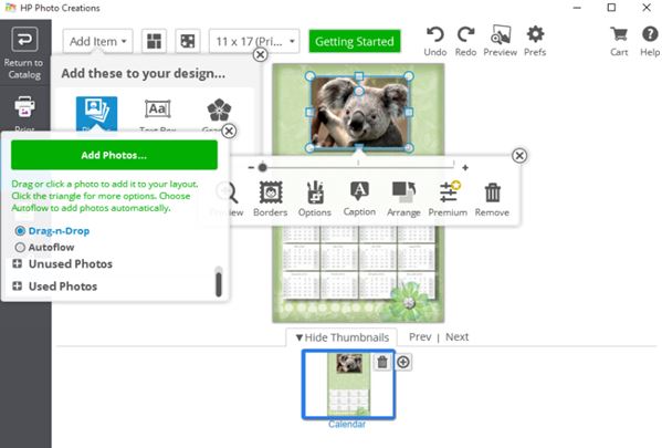 This next calendar creator software might be a bit of a weird choice, but it’s actually the most feature rich calendar generator that I tested. HP Photo Creations is a photo printing software from HP. It usually comes in the driver bundle, but it can be downloaded and used separately. Note though that it’s a bit bulkier, close to 40MB in size.