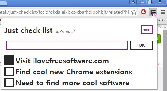 just checklist is a checklist extension that functions like TickTick, only it’s simpler. For starters, there are no online accounts, everything works offline and is saved locally on the computer. Start by typing in your task title in the input box at the top of the pop-out window and clicking on OK.