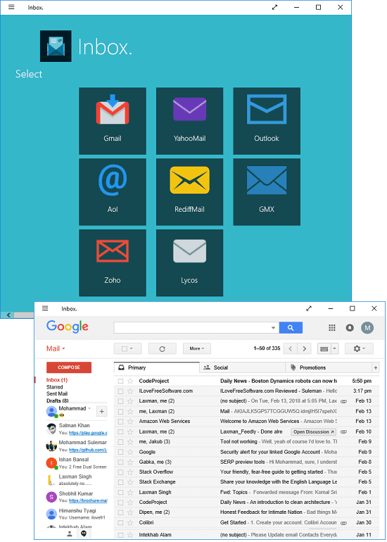 Just like the apps above, you can simply get it from the Windows store and install it. As you open it will show you the name of the popular email services that it supports. You can choose the email service and proceed further by logging in. After successful login, it will take you to your emails and you can start managing them. You can see the working screenshot of the app above.