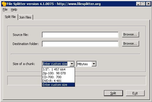 The application like any efficient file splitter offers you a area where you can mention ‘Bytes per file’, thus you can select the maximum size of the resulting files. For example, if you have a 4 MB ZIP file that you wish to put on diskette – you may wish to select the 1.44MB option from the size drop-down box. This would split the file into 3 segments and also create the .bat file needed to restore the files to the single original.