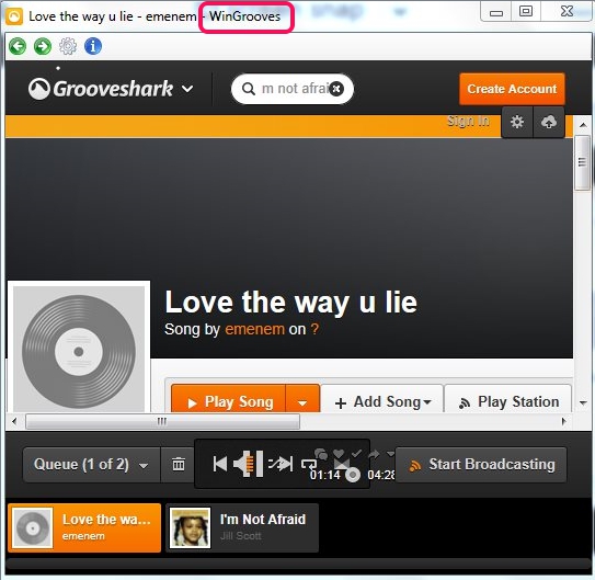 Grooveshark Windows Application: