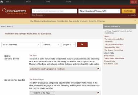 These are the 6 free online audio Bible websites which will let you listen to the Bible. These websites are great as you can play the Bible and keep working on your computer simultaneously. The audio keeps running in the background. So you can work and listen to the Bible at the same time. Try these websites out.