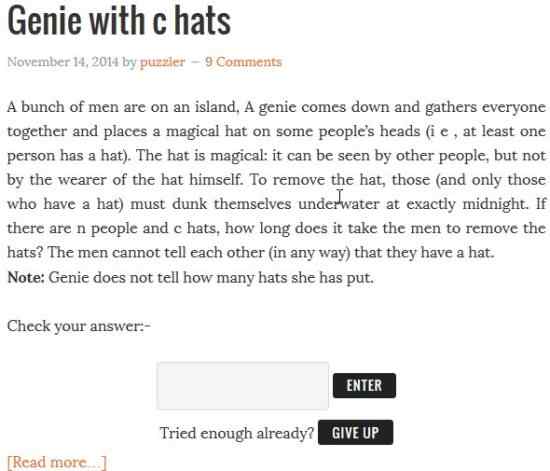 This is another website with lots of interview questions. The section of interview puzzles will have questions listed out like shown in the screenshot above. You can click on any question to read it and try solving it. In case you do reach a solution, you can share it on the website via the comments section. The only setback to this website is it relies on answers from the users for the puzzle questions. So there are a lot of questions which do not have any answers to them. So you can not cross check your answers or see the answer if you are not able to reach a logical conclusion.