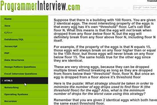 The entire website is dedicated to covering interview questions. This website has a lot of interview questions on a lot of different technologies like Java, C/C++, HTML5, Javascript, PHP, Databases/SQL, Data Structures, Networking, etc. Apart from these this website also has a section for interview puzzles. You can see all of them listed in the left hand side column. When you click on a puzzle, you will see the puzzle question listed in bold text and below that would be the answer. As I mentioned in the introduction that these puzzles are based more on out of the box ideas, so they can have more than one solution. So some puzzles might have more than one answers to it. Check them out.