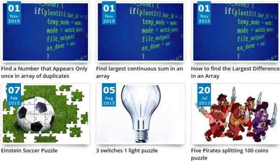 This website has some nice interview puzzles listed for you to solve. They have featured some puzzles that were asked in interviews at Google, Microsoft, etc. Again here also you will find some common puzzles which you saw in the previous website. The latest puzzles additions will be shown on the home page of this website in a tile layout format. You can go through them one by one and start solving them. The answers are also given along with the puzzles, so you can cross check your answers with the one on the website.