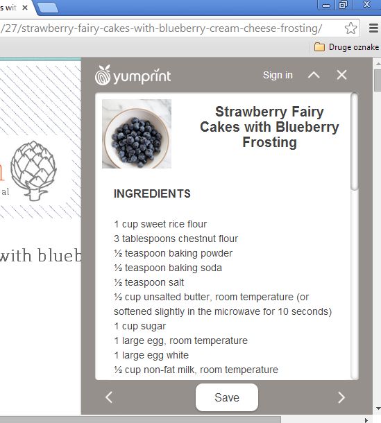 This is basically a recipe archiver. It can be used with all the famous recipe websites and blogs. As soon as you open up a supported website, there should be a Yumprint button available in the top right corner. By clicking on it you’ll automatically generate a printable version of the recipe in a popup. To save a recipe you’ll have to click on the Save button. Account needs to be registered with the Yumprint website where collected recipes are saved.