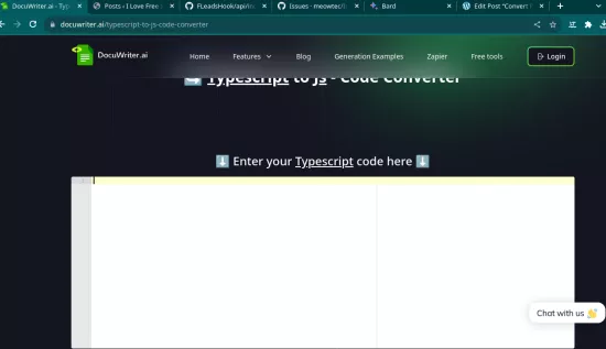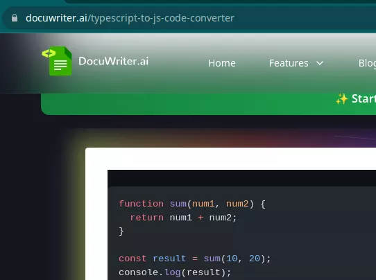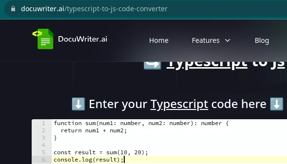 Docuwriter.ai website is offering a free tool to convert TypeScript code to JavaScript, and I will talk about this tool in this blog post. It takes a TypeScript code from you and returns plain simple JavaScript code. The result of code conversion are pretty accurate, and you can use it for your daily work.