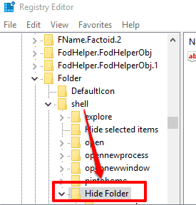 Step 7: Go to: HEKY_CLASSES_ROOT → Folder → shell. After that, create a Hide Folder name key under the shell key.