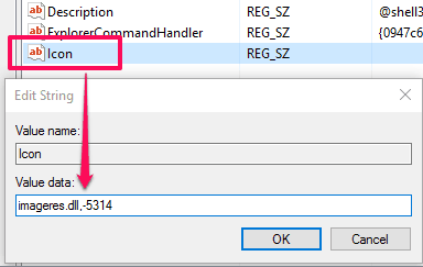 {0947c622-f98a-48a5-9df7-60e5fe202e07}“. - Icon value: Its value data should be set to