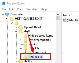 Step 3: Under shell key, create another new key, and name it as “Unhide File“.