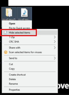 Step 4: Now open a folder or go to desktop and right-click on a particular folder or file, you will see that “Hide selected items” option is visible. Press that option and selected items will be hidden.