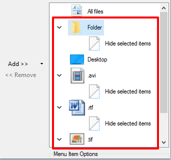 Y0u can’t select all items together. So, it might take time when you have to select dozens of file extensions. Select extensions, press OK button and you will come to the main interface. Now you will see that Hide selected items option is added for all the file extensions that have been selected by you.