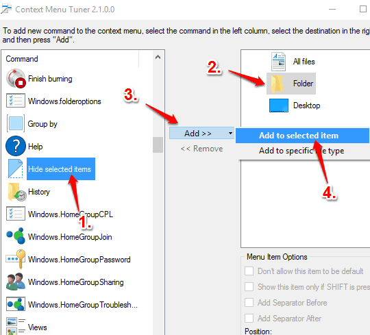 Step 1: Grab the zip file of Context Menu Tuner software, extract it, and launch its portable application. This software lets you add or remove items from Windows 10 Context menu. You can read the details here. We will use this tool to add ‘hide selected items’ option to the Context menu.