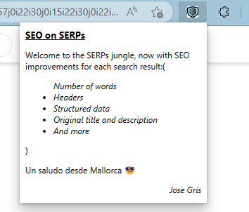 The extension will now show you some extra details about the search results. It typically includes the details like: