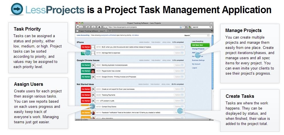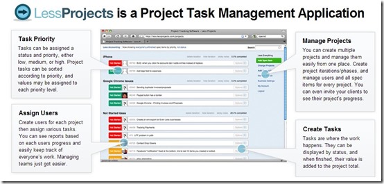 LessProjects is the fifth and final online project management tool is this list. The online project management tool allows you to work on multiple projects at a time and you can update the status of the project from time to time on your dashboard. You can create a project and assign different tasks in it to different users. You can even add different users for different projects. After you have assigned the tasks, you can set the priority level of their task as low, medium, high and track their progress. While the task is in progress you can keep updating its progress and invite the client to view the project. You can update the status of the project as in development, in design, in QA, in client review and completed. Your clients will only be able to view the project and cannot do any modifications to it.
