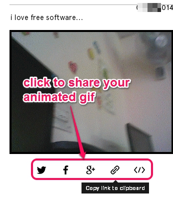 You can also record your own clips in form of animated gif and can share to your Twitter, Google+, and Facebook account.