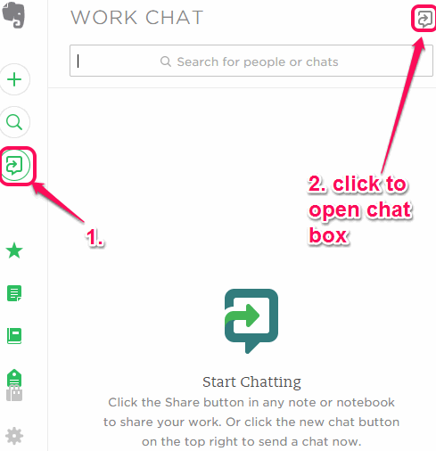 In above screenshot, you can see the chat box provided by Evernote with Work Chat.