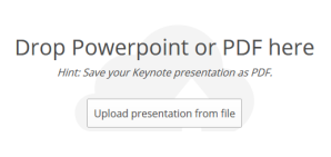 After creating your account, you need to upload a PDF file or PowerPoint presentation using Upload button. Drag n drop support is also available.