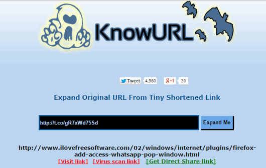 KnowURL has also easily managed to reserve a place in this list because it does what its name suggests. You can find the long URL of any short URL and can also use few more options.