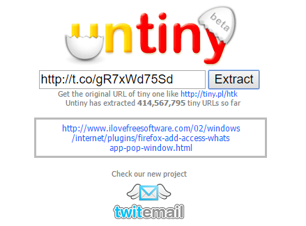 Untiny is the simplest website in this whole list. It simply extracts the original URL from any short URL provided by you. After extracting the long URL, you can open that link. The whole process of finding the original URL hidden behind short URL needs only a single mouse click.