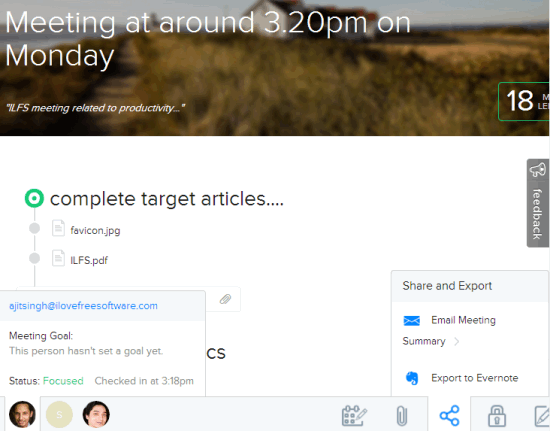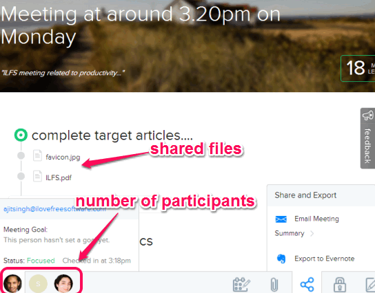 Not only you can organize meetings, infact you can also collaborate with people related to meeting agendas in real-time. You will be able to share files, any document, create meeting agenda’s notes, and meeting goals to make meeting more productive. Participants will be able to view all the changes in real-time.