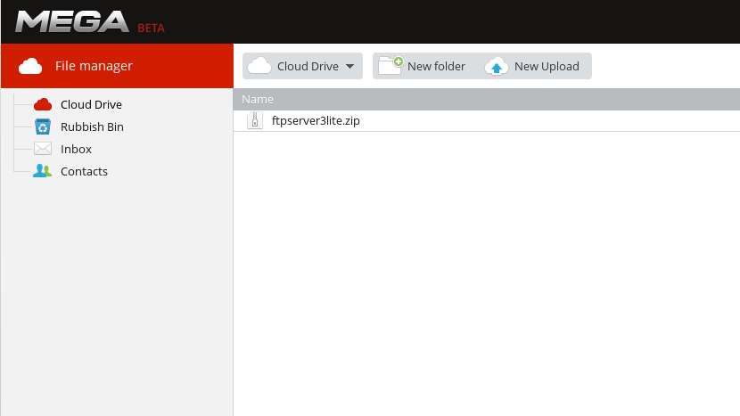 MEGA is of course cloud based, like so many other free file hosting services are these days. Files that you upload and store will be encrypted. On top of that, to prevent data lose, two copies of files are gonna be kept, so that if something happens to one of the server locations, there’s a backup available. Notice in the left sidebar the options for opening up Trash, Contacts, and Inbox where other registered users of this free file hosting service can send you messages. All the way at the bottom of the window you have an option for keeping track of file transfers, which can’t be seen in the image above.