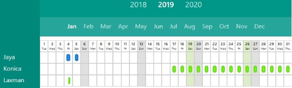 Here you can vacations marked by you as well as your team members. Now you can see in one glance who is on leave and when. So now you can manage your meetings and work more efficiently.