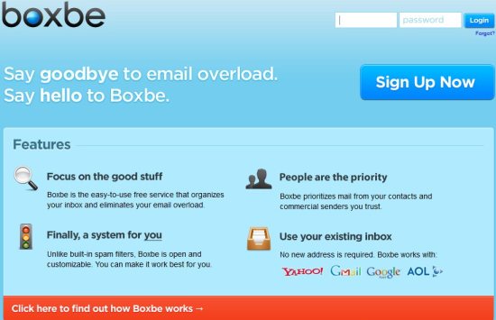 • Use Your Existing Accounts: Boxbe supports Yahoo! Mail, Gmail, AOL Mail and other popular email service.