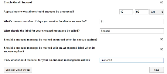 When you install it, you can select the limit of days you want your emails to be snoozed up to. Other than that you can also set the snooze-expired emails to be placed in an ‘unsnoozed’ label. You can also mark emails unread when their snooze expires. You can access the settings from the Google Apps on your Computer.