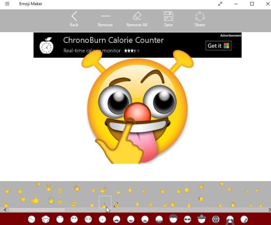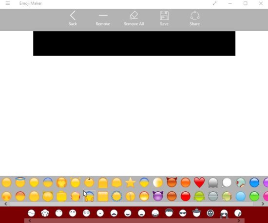 The Windows 10 emoji maker app can be downloaded from the Windows 10 store or from the link given at the end of this article. When you start the app you will see an interface like the one shown in the screenshot below.