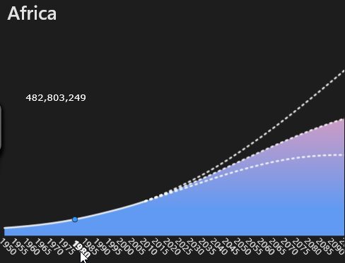 Apart from the world population you can also see statistics from different parts of the world, country wise. You can also see how much the population of the world or a particular country was at a particular time on the graph. Like the below screenshot shows the population of Africa in 1980.