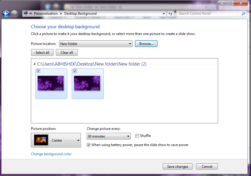 The folder where you had unzipped the folder or the files which you downloaded, you would observe two files being created named jpg1.jpg and jpg2.jpg. Now you need to right click on your desktop and click on personalize. There you would be required to select Desktop Background where you need to browse to the unzipped folder and select jpg1.jpg and jpg2.jpg. Also keep in mind to select the desired time interval in the space available.