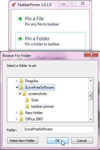 - Pin items through Taskbar Pinner: Taskbar Pinner has a very clear interface which gives you different options to pin files, folders, and libraries to the taskbar. Lets see how each of these modules help us to choose different items from your computer.
