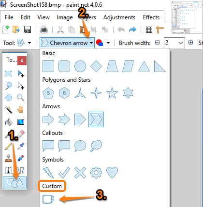 Paint.net comes with some basic shapes, like arrows, polygons and stars, symbols, etc. If you want more shapes, then you are out of luck. Thankfully, there is a way to create your personal custom shapes (SVG (2-D graphics) Shapes), within Paint.NET, that you can save and use with other drawing tools also.