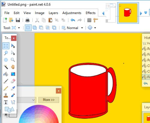 You can select that shape and drag mouse cursor on Paint.NET’s interface to add that shape. Now you can fill colors or whatever you have to do.